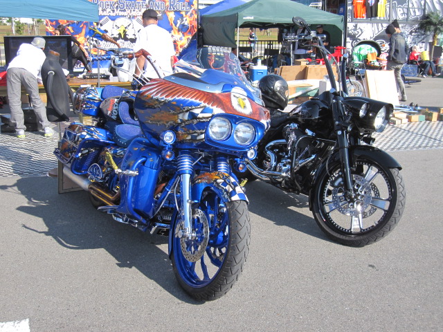 今回のイベントはバイクはショップしかエントリー出来なかった見たいだけど、駐車場はハーレーだらけ!!