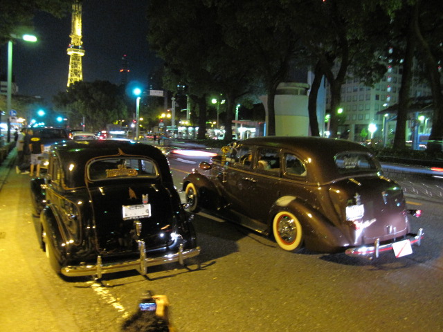 ブルーバードナイツよくわからんが、栄の町にアメ車が集合するらしいと、いつもお世話になっているアーツ出口さんからお誘いをいただき、出発を決意。8時30分集合10台ぐらいのアメ車集結し、栄へ出発、すごい栄の道はローライダーだらけ、