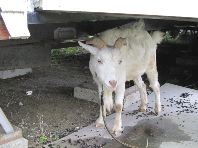 36兄の会社の資材置き場なのですが、動物だけで何匹いるのか?山羊 犬 鶏 魚類、欲しい人はメールください、だぶんくれるよ!!