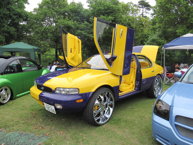 売り物ではなく、イベントカーみたい!僕のセンスにピッタリ!かっこい~ Cイング加工にエアーショックでベタ落ち!でこのビックサイズ!一緒に行った後輩は、僕のセンス分からず首をかしげていたが、 この車はかっこい~!!