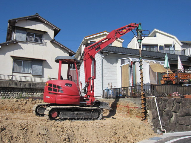 H鋼の間は、や板を入れて仮設土留め工事の完成!!