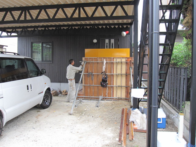 玄関前の目隠し擁壁打ちっぱなし!ようちゃんのお仕事は、型枠大工さんなので、型枠工事はお客様施工!いつもより自分の家だとお仕事やる気マンマン!!