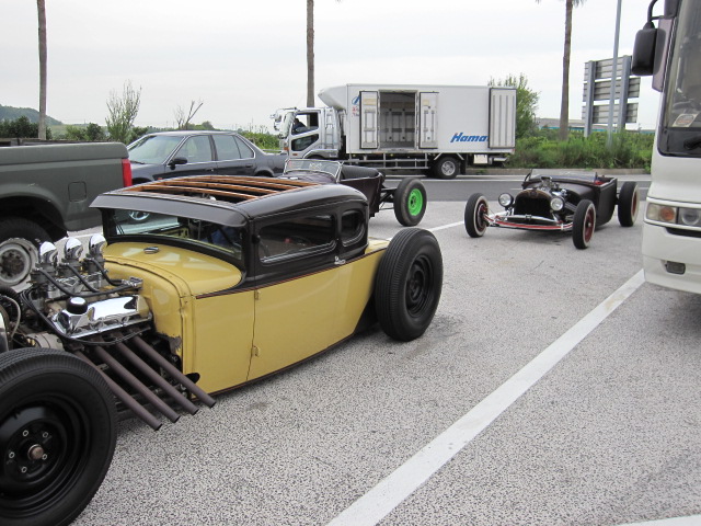 日曜日は朝も早くから、お友達の洋ちゃんと、僕の愛車マスターデラックスに乗って内海で行われる、ローライダー とホットロッドのアメリカ車だけのイベントへ行って来ました。 朝6時出発、なんせ70年前の車なので早めの出発です。8時に知多半島道路 阿久比PAで、いつもお世話になっているアーツ出口さんと待ち合わせ、マスターデラックスちゃんトラブル無しで早く着きすぎ~ そこで思いついたのは! 阿久比のおじさん36兄、阿久比インターで降りて会いに行くことに。