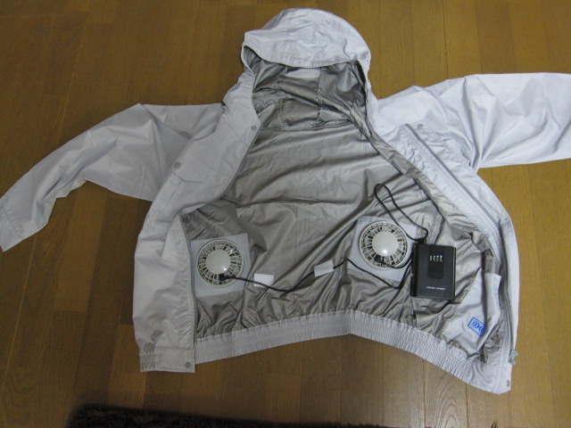 夏の暑い日にこの服着ていたら変な目で見られそう!でもかなり涼しいみたい、1回の充電で8時間ぐらいもつらしいけど!インターネットなどでで安いの出ているみたいだけど、バッテリーではなくてカン電池みたい!で1日もたずに電池交換ばかりしないといけないみたいですよ!ちなみに僕のは赤外線 紫外線カット チタン加工 フルオプションで ¥25000 まだ着てないけど、着るのが楽しみ~ でもかなりかっこわるいよね~