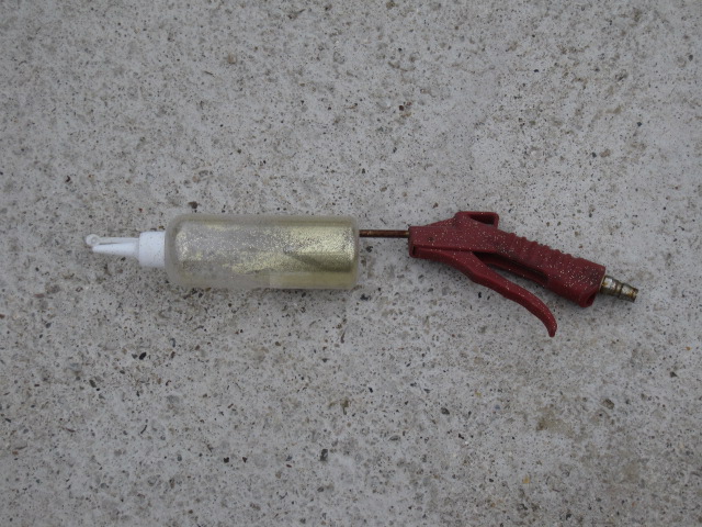 今回フレークガンが買えないので、後輩の56ちゃんと相談して製作したフレークガン!大失敗!出方がむらむらでかなりフレークが下におちて無駄使い!だめだ~ 結局クリアにまぜて吹きました!!