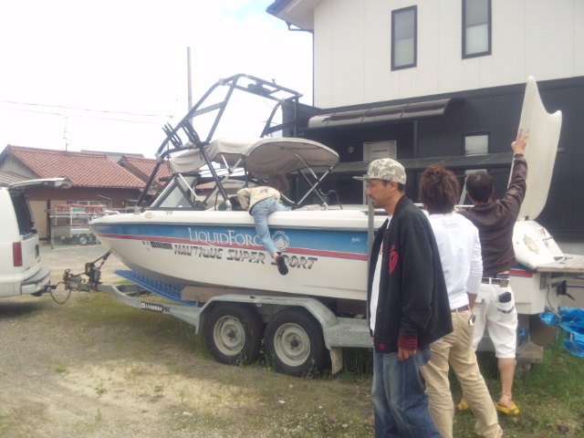 で!本当はウェークボードしに行ったのですが、さすがおじさんたち、寒い!寒い!退却!!で地元帰って、また僕の家でバーベキューでした!!