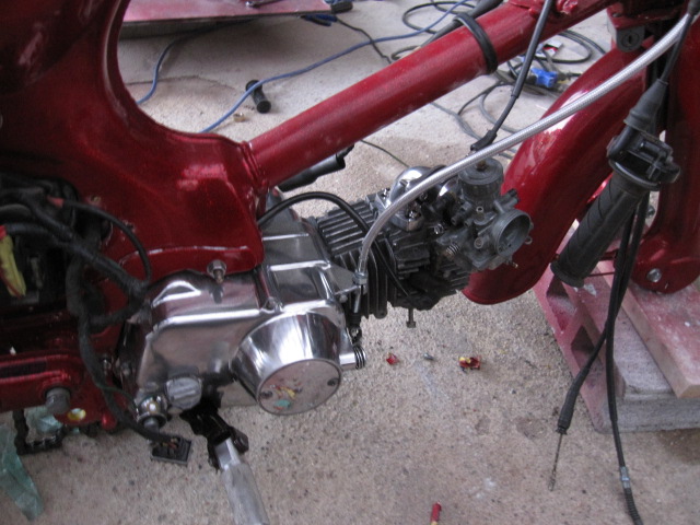 エンジンはモンキーのエンジンでタケガワ88ccボアップ!カブでクラッチ4速!なかなかいないよ!!