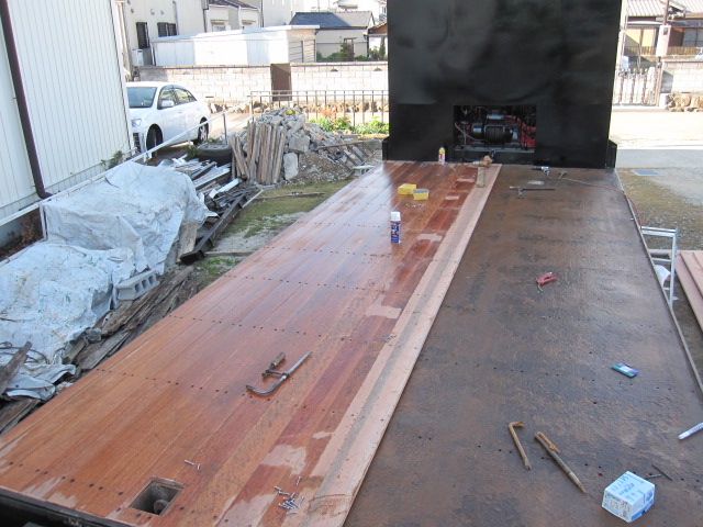 鴨居作成 塗装 荷台床材張り替え ほぼ自分で趣味もかねてしましたが、疲れた!!楽しかった?金額はバンパー¥75000円 鴨居鋼材 ¥35000円 塗料85000円 荷台床材¥110000円 そのたもろもろ!かなりお金使ちゃった! お正月は寝るしかないね!!