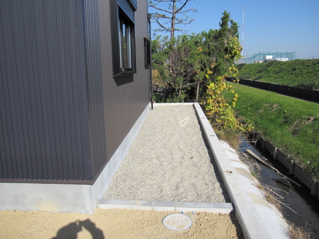 余った生コンクリートで、犬走りコンクリート作ってしまいました!現場監督さん ごめんなさい!!
