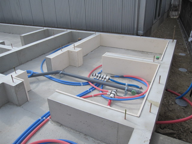 お風呂と洗面所の基礎の内側には、断熱材を貼りました!温かくなるらしいよ~?