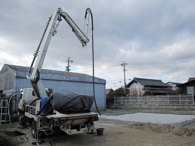 ポンプ車を使って コンクリート打設 赤字だ~!!