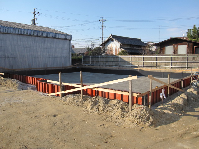 ベースコンクリート打設しました!!生コン16m3も使ちゃった!! 寒いので外仕事は辛いで~す!!